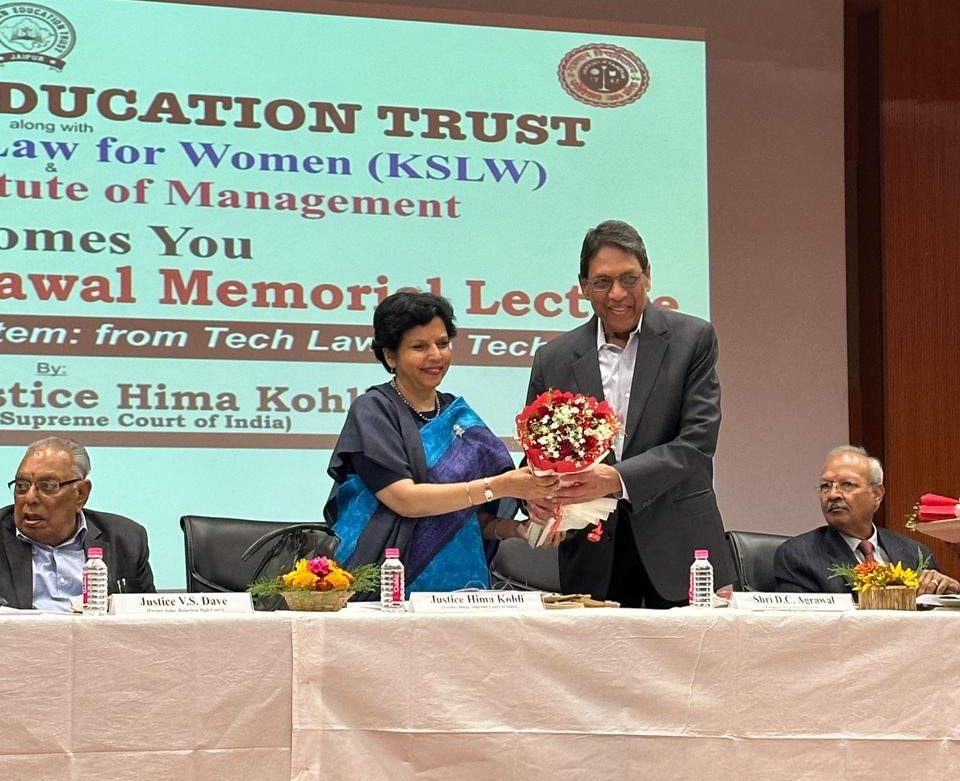 Justice Hima Kohli ने शनिवार को राजस्थान एजुकेशन ट्रस्ट और कानोरिया स्कूल ऑफ लॉ फॉर वूमेन के संयुक्त तत्वावधान में आयोजित चौथे ‘जस्टिस एस.सी. अग्रवाल मेमोरियल लेक्चर’ में मुख्य वक्ता के रूप में व्याख्यान देते हुए यह बात कही।