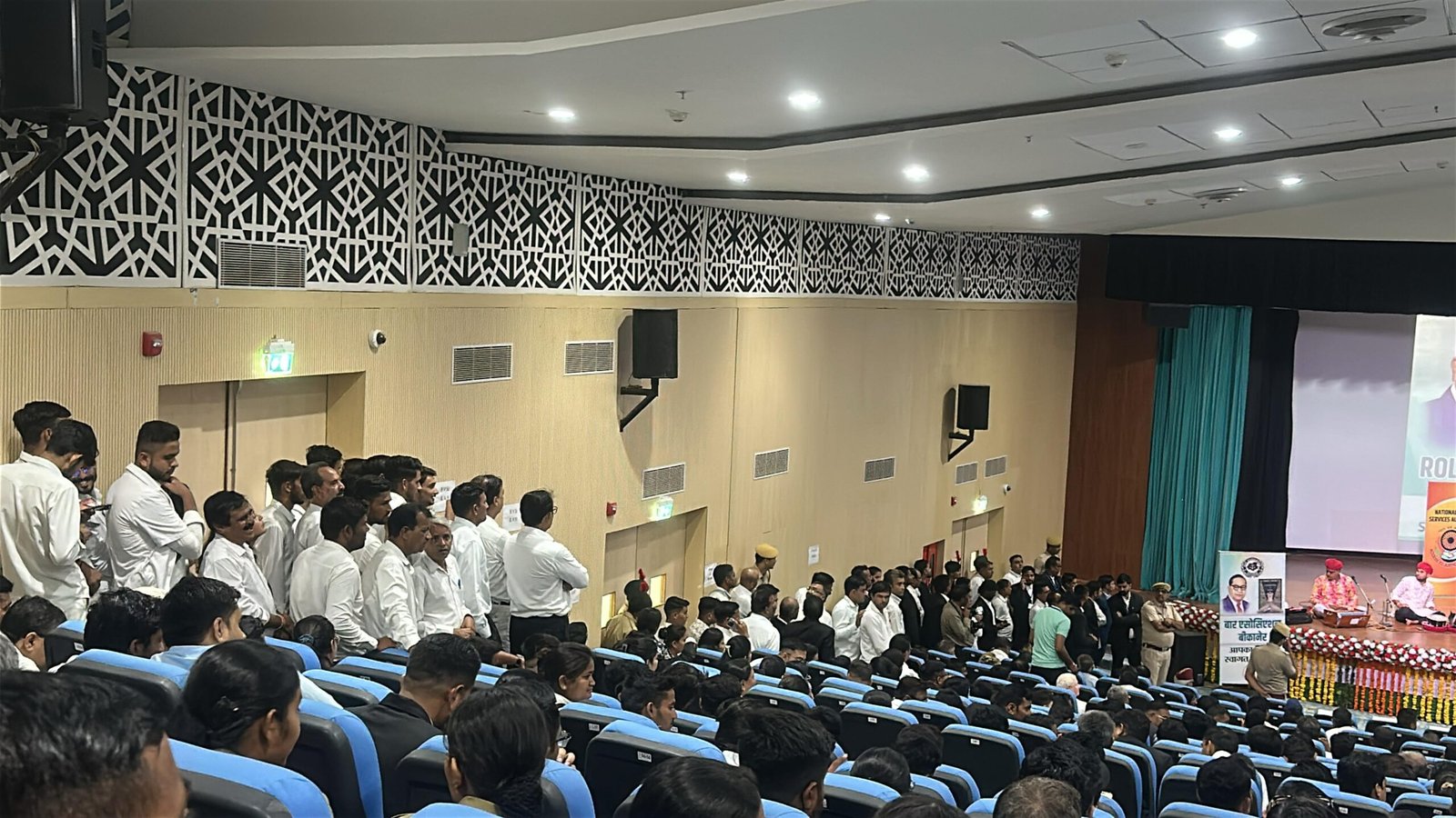 हॉल में ही अधिवक्ताओं ने सीजेआई के सामने हाईकोर्ट बेंच की मांग करते हुए नारेबाजी करते रहे.