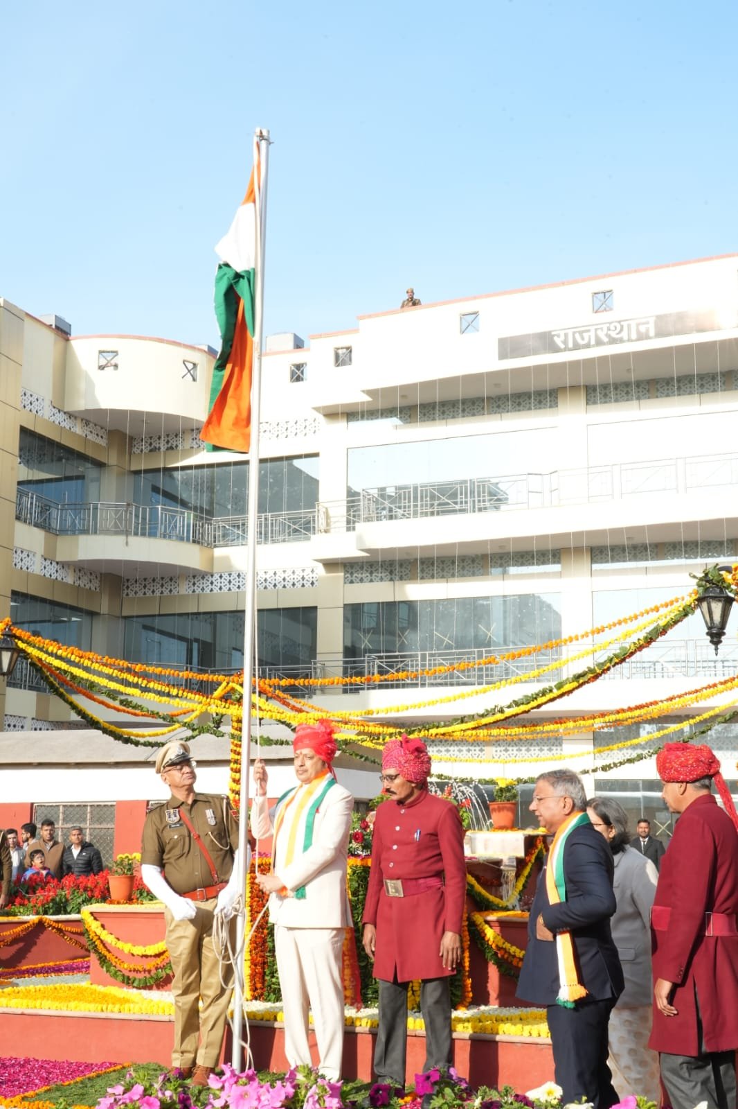 इस अवसर पर राजस्थान हाईकोर्ट के वरिष्ठ न्यायाधीश जस्टिस पुष्पेन्द्र सिंह भाटी ने नई बिल्डिंग पर ध्वजारोहण कर समारोह का शुभारंभ किया।सुबह निर्धारित समय पर हाईकोर्ट परिसर में आयोजित मुख्य समारोह में ध्वजारोहण ​किया गया, उसके साथ ही राष्ट्रगान की गूंज सुनाई दी।