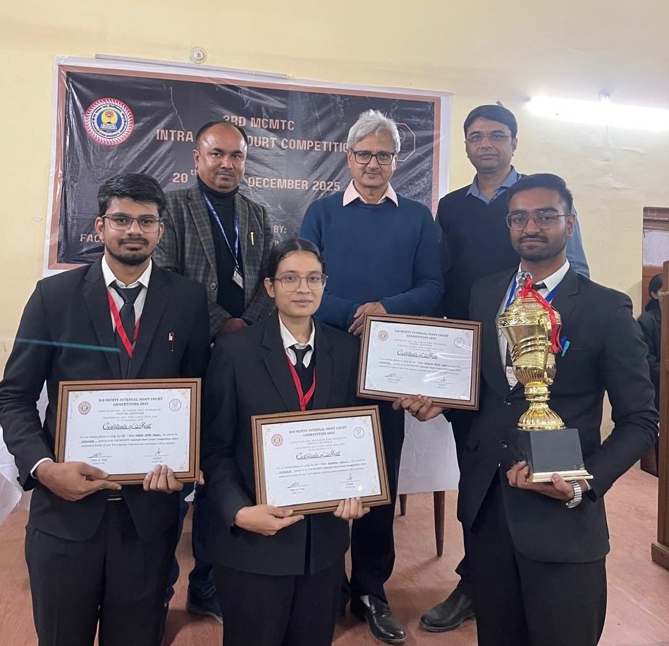 दो दिवसीय इस प्रतियोगिता का फाइनल सोमवार दोपहर में आयोजित हुआ, जिसमें कानूनी दलीलों और संयम के आधार पर लॉ स्टूडेंट निर्वाणजंन प्रताप सिंह, खुशबू गेहलोत और वक़ास अहमद की टीम ने प्रथम स्थान हासिल किया।