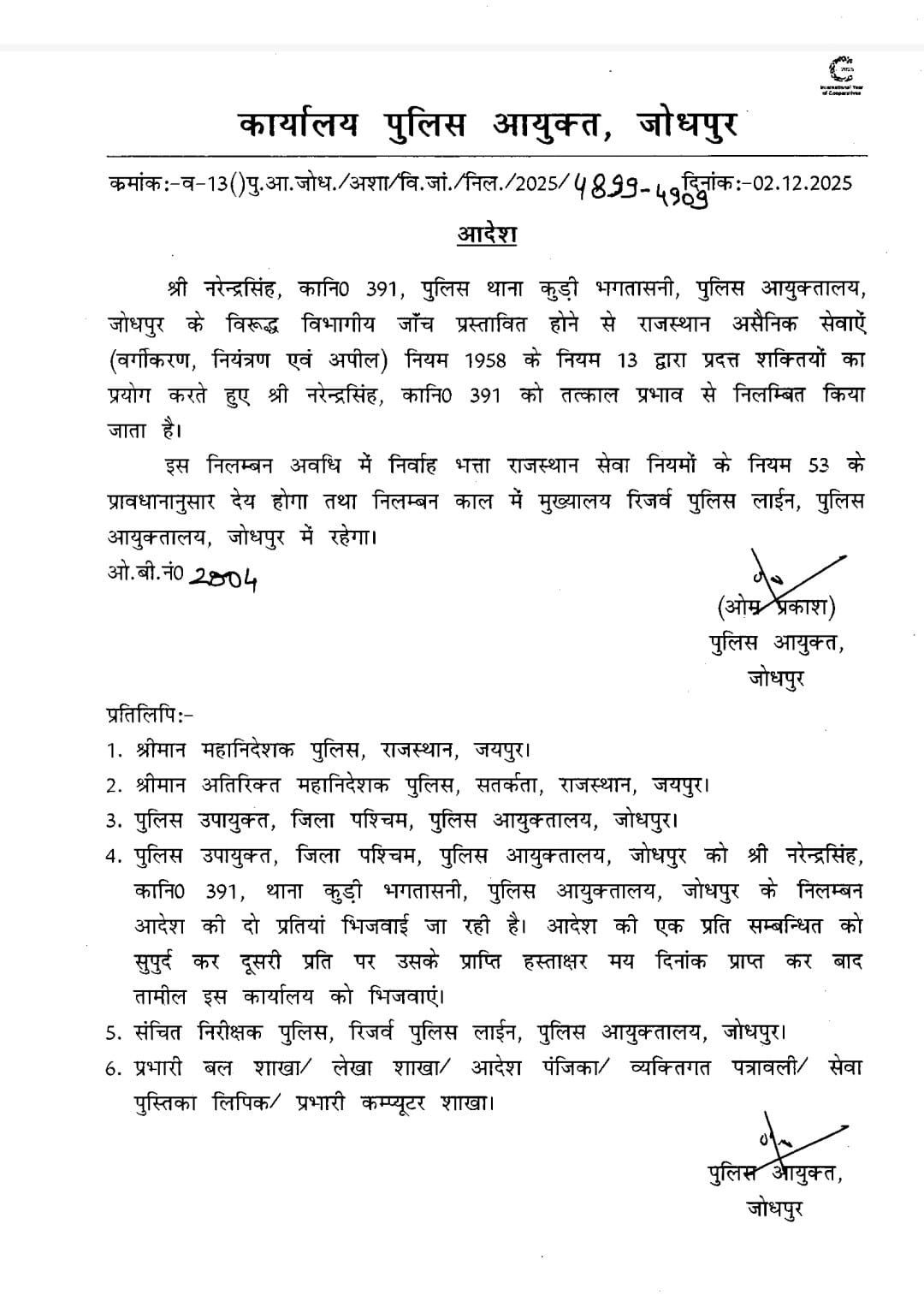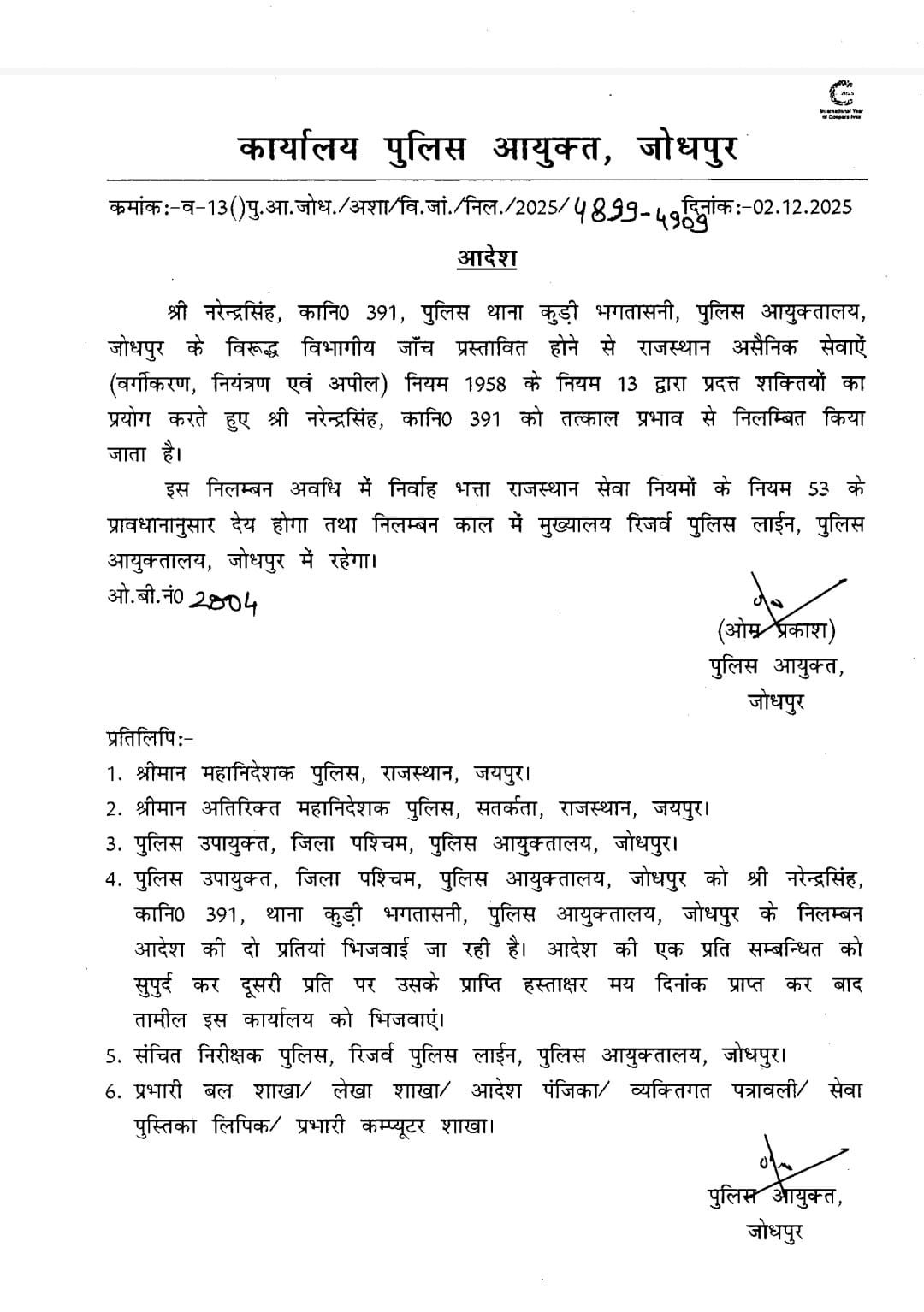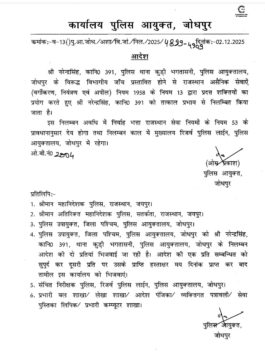 जोधपुर पुलिस कमिश्नर ने कोर्ट की फटकार के बाद बताया कि मामले की जांच आईपीएस स्तर के अधिकारी से करवाई जा रही है।