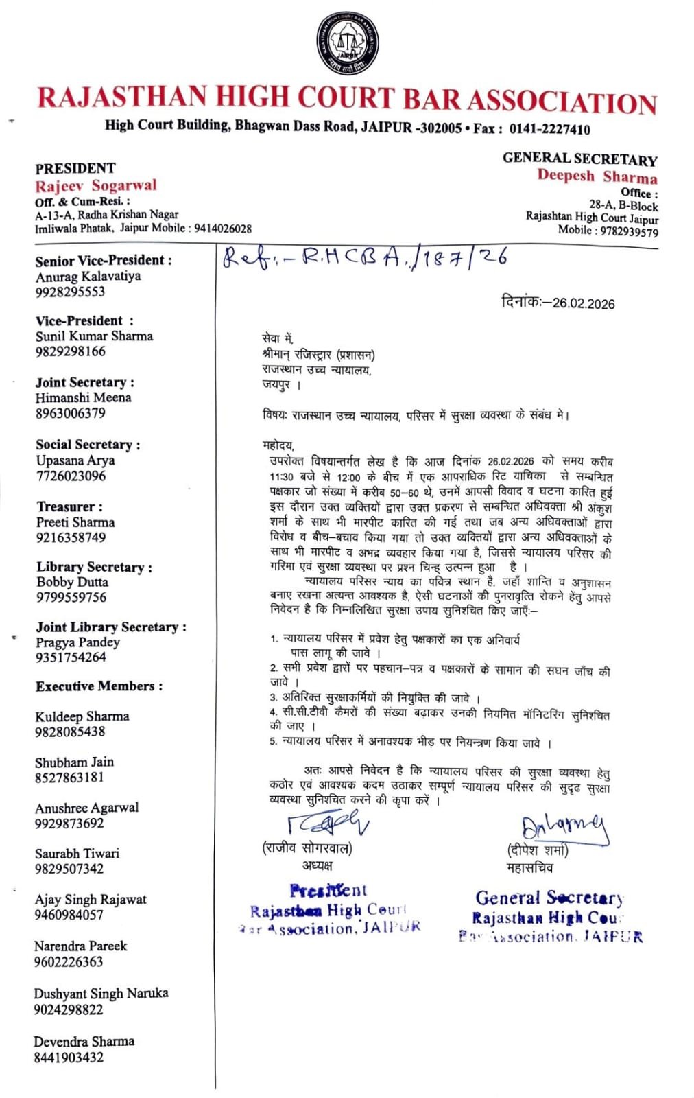 इसी बीच राजस्थान हाईकोर्ट बार एसोसिएशन, जयपुर ने इस घटना को लेकर कड़ा रुख अपनाया है।
