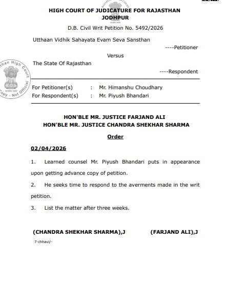 इस मामले में याचिकाकर्ता उत्थान संस्थान के अध्यक्ष सरवर खान की ओर से अधिवक्ता हिमांशु चौधरी ने अदालत के समक्ष विस्तृत तर्क प्रस्तुत किए।