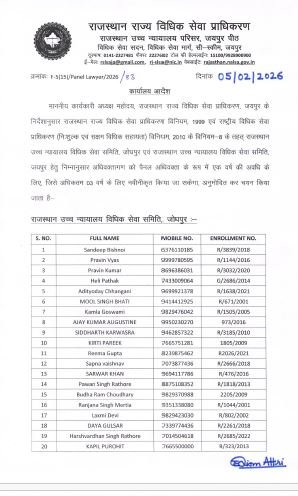 राजस्थान राज्य विधिक सेवा प्राधिकरण ने स्पष्ट किया है कि पैनल अधिवक्ताओं का चयन योग्यता, अनुभव और विधिक सेवा के प्रति प्रतिबद्धता के आधार पर किया गया है।
