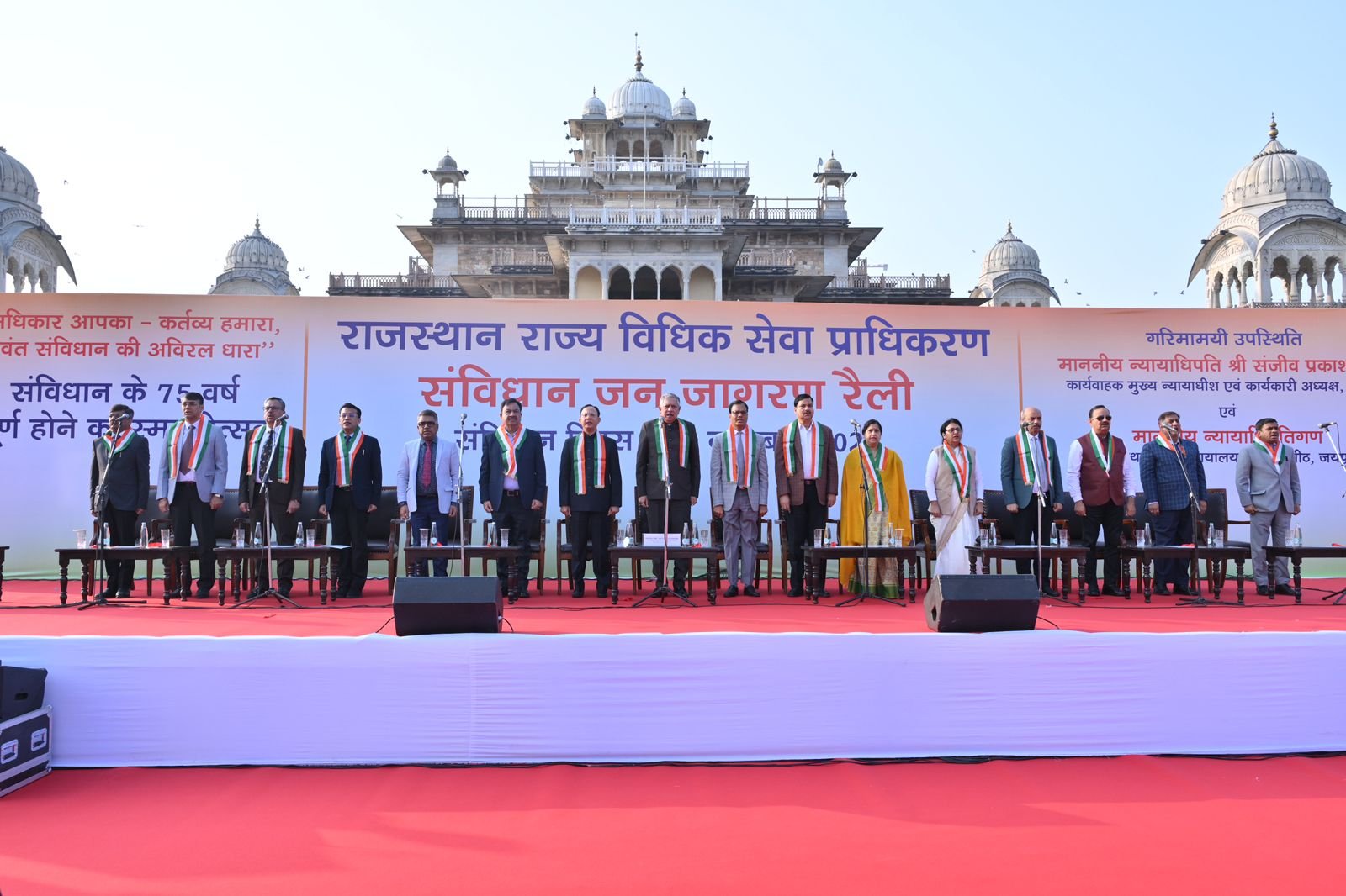 रालसा के कार्यकारी अध्यक्ष और कार्यवाहक मुख्य न्यायाधीश जस्टिस संजीव प्रकाश शर्मा के मुख्य आतिथ्य में आयोजित इस विशेष समारोह में राजस्थान हाईकोर्ट के सभी जजों ने संविधान की प्रस्तावना का सामूहिक वाचन किया।
