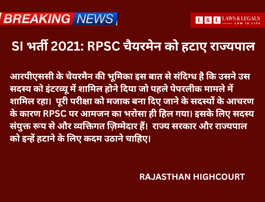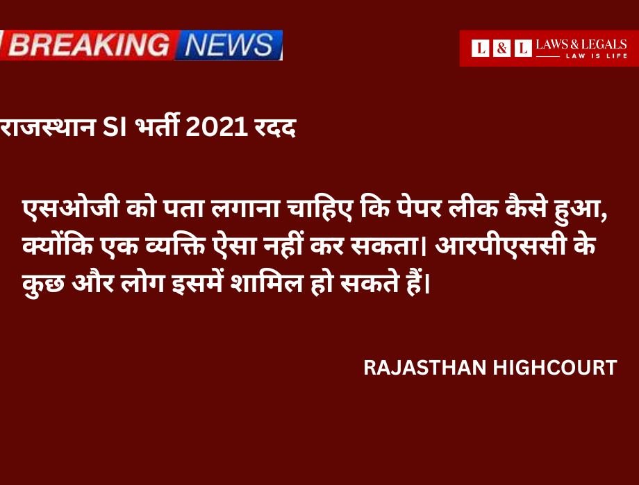 जयपुर। राजस्थान हाईकोर्ट ने बहुचर्चित एसआई भर्ती 2021 को रदद कर दिया हैं. राजस्थान हाईकोर्ट ने अपने फैसले में बेहद सख्त और कई महत्वपूर्ण टिप्पणियां की हैं.