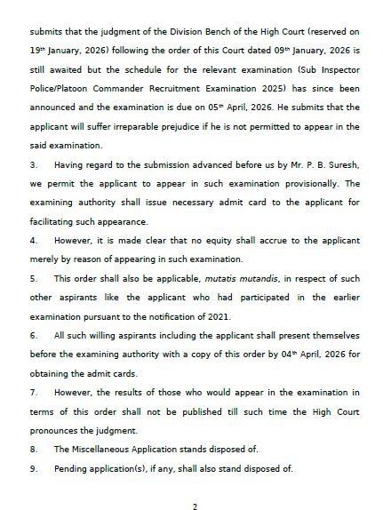यह आदेश अन्य समान परिस्थितियों वाले अभ्यर्थियों पर भी लागू होगा और सभी इच्छुक अभ्यर्थियों को 4 अप्रैल 2026 तक आदेश की प्रति के साथ परीक्षा प्राधिकरण के समक्ष उपस्थित होना होगा.